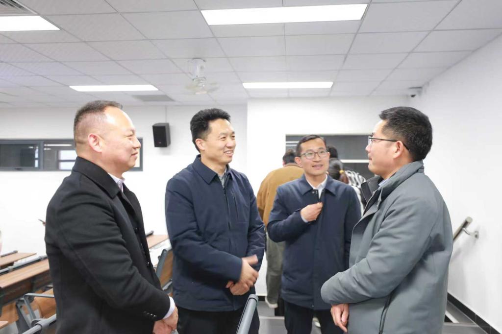 朱晓东深入驻校警务工作室、“一站式”学生社区主题性党员之家、图书阅览室及教职工办公室等场所,详细了解校园安全、党建阵地、学习环境及教师工作生活情况。与学院领导班子进行座谈,围绕人才培养质量、教师队伍建设、实践教学优化、工作运转机制等方面进行交流,并提出指导意见。与各部门工作人员进行交流,了解关心他们在工作和生活方面的情况,对大家饱满的精神状态表示赞赏。在教学检查环节,他随机听取了马克思主义学院蔡如军老师的《毛泽东思想和中国特色社会主义理论体系概论》课程,课后与授课教师就教学内容设计、案例选取、课堂氛围营造等进行交流探讨,对教学成效给予肯定,并就如何将理论与现实更好融合提出建议。