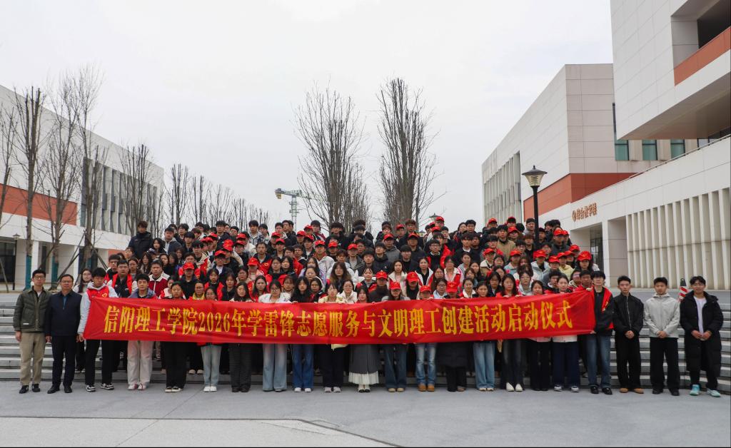 3月5日中午,信阳理工学院2026年学雷锋志愿服务与文明理工创建活动月启动仪式在初心广场举行。学院后勤保卫部部长江林祥出席仪式并作动员讲话,教职工及学生志愿者代表100余人参加仪式。仪式由学院团工委负责老师赵浩森主持。